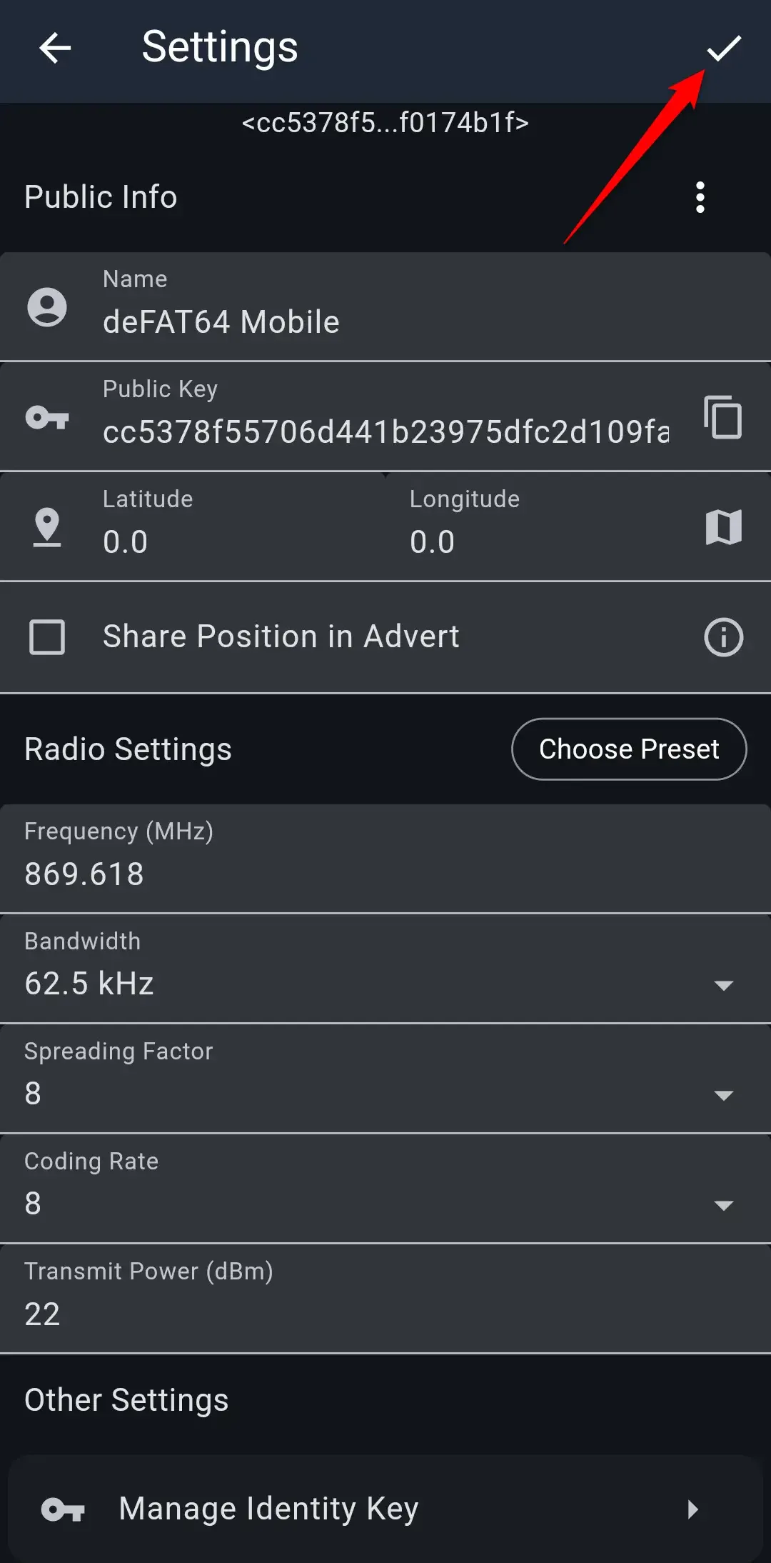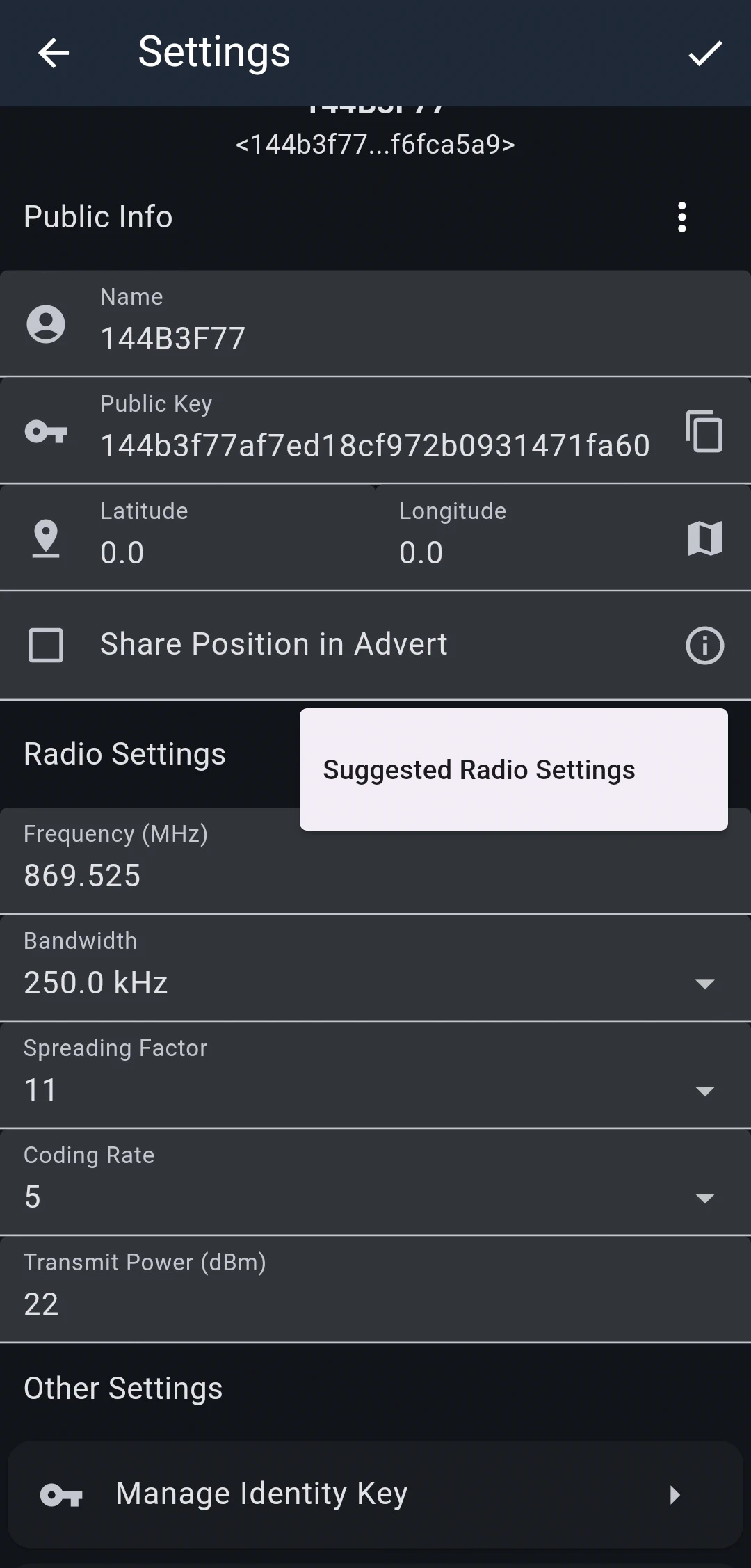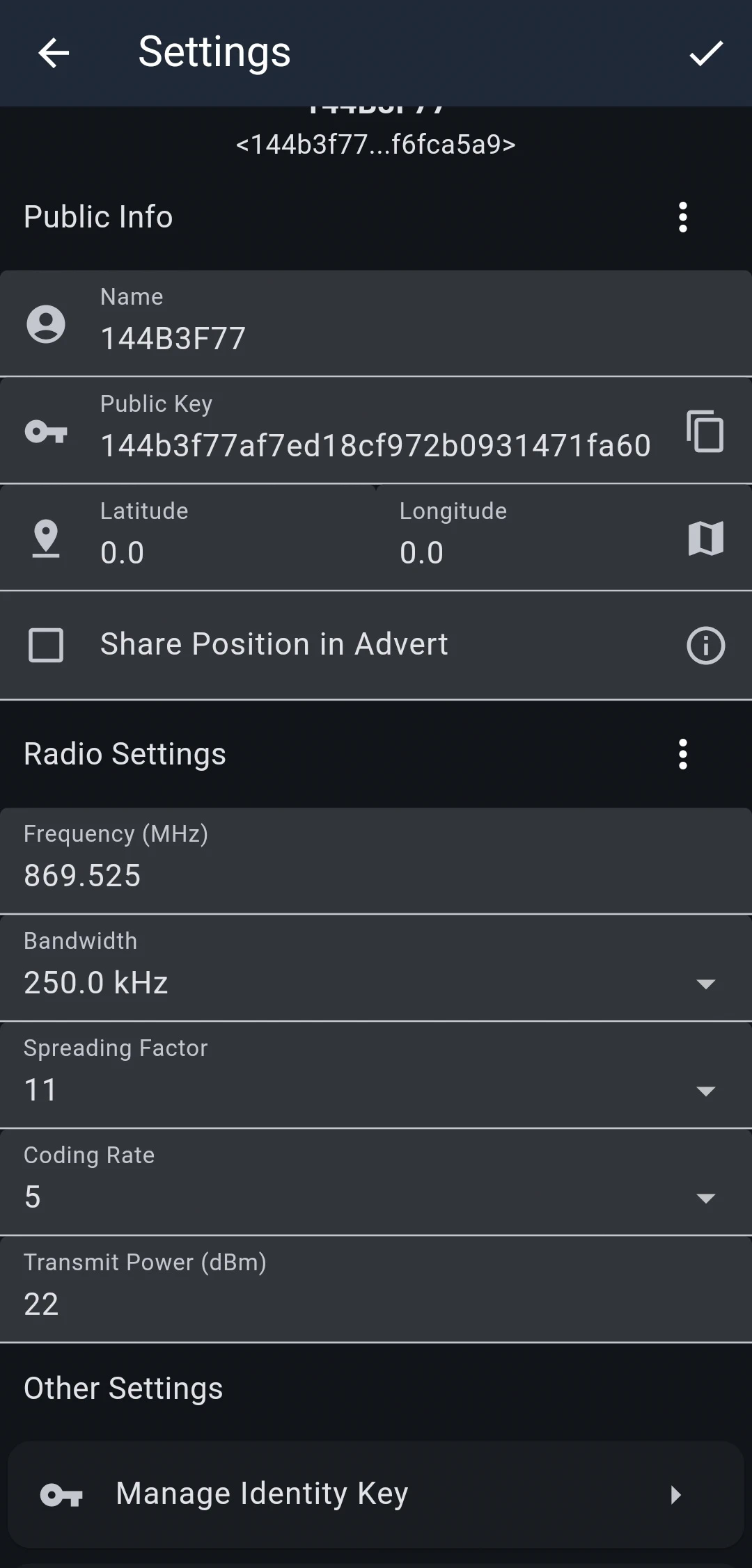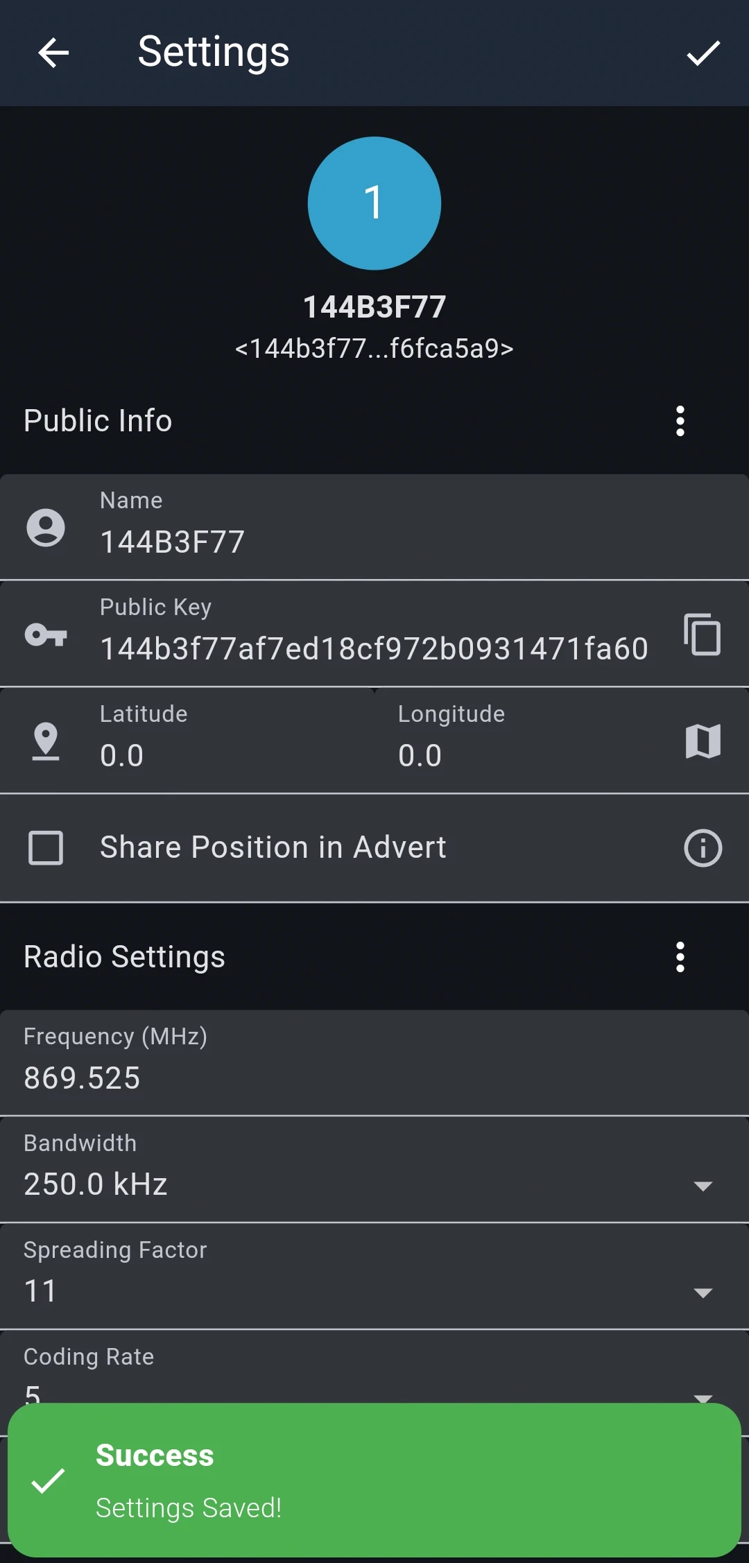 Share Position in Advert - twoja lokalizacja zostanie dołączona do reklam, które służą do rozgłaszania urządzeń w sieci MeshCore