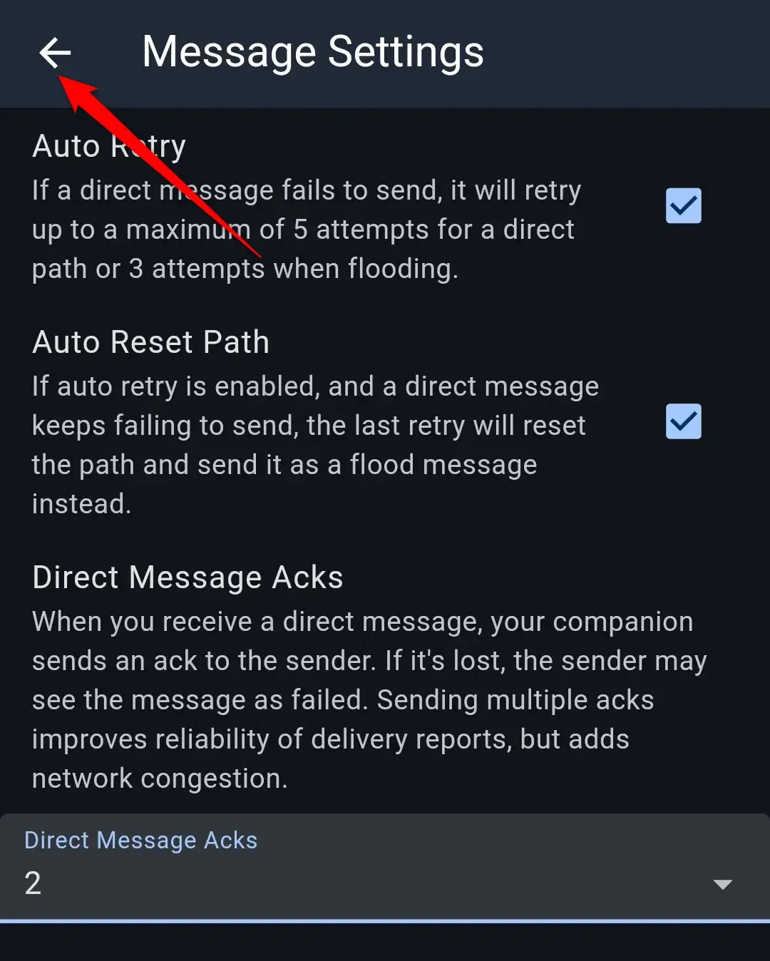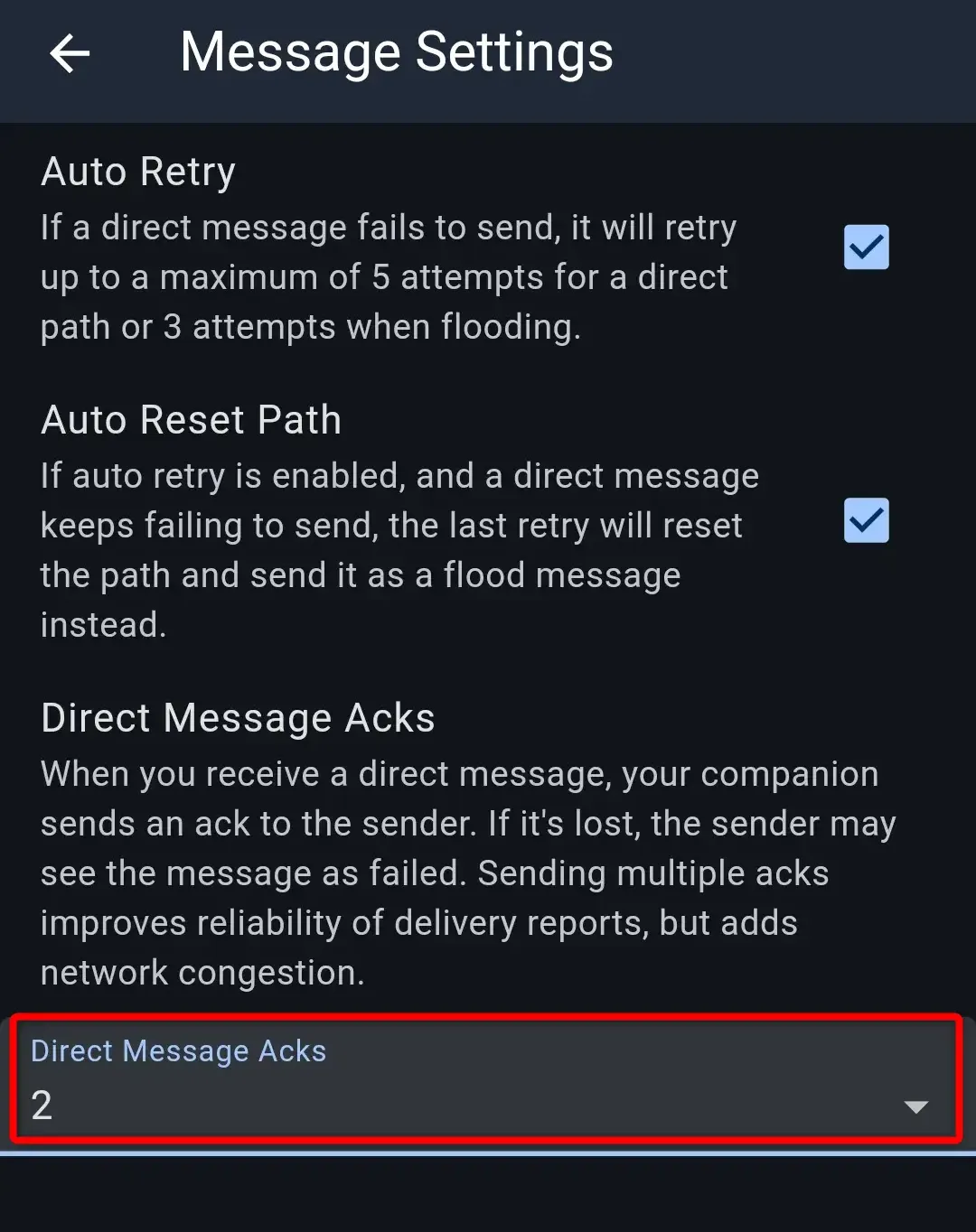 Z pola Direct Message Acks wybierz 2.
