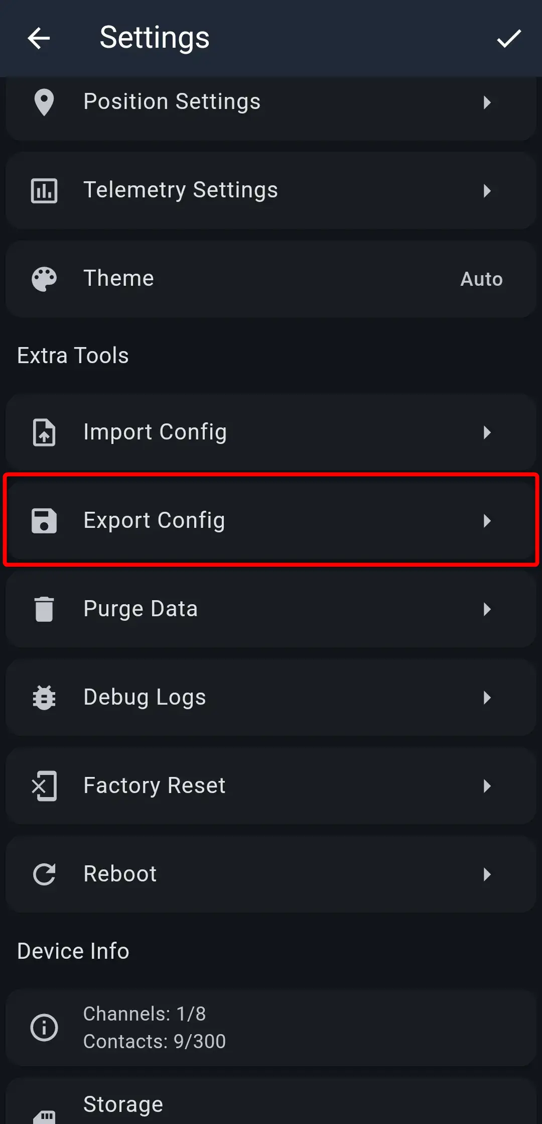 Pojawi się ekran z opcjami konfiguracyjnymi. Zjedź na dół i poszukaj opcji Export Config.
