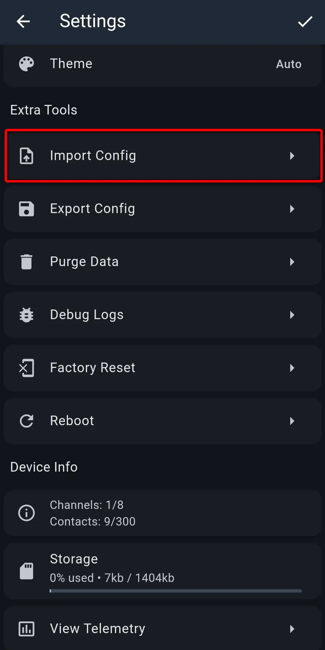 Pojawi się ekran z opcjami konfiguracyjnymi. Zjedź na dół i poszukaj opcji Import config.