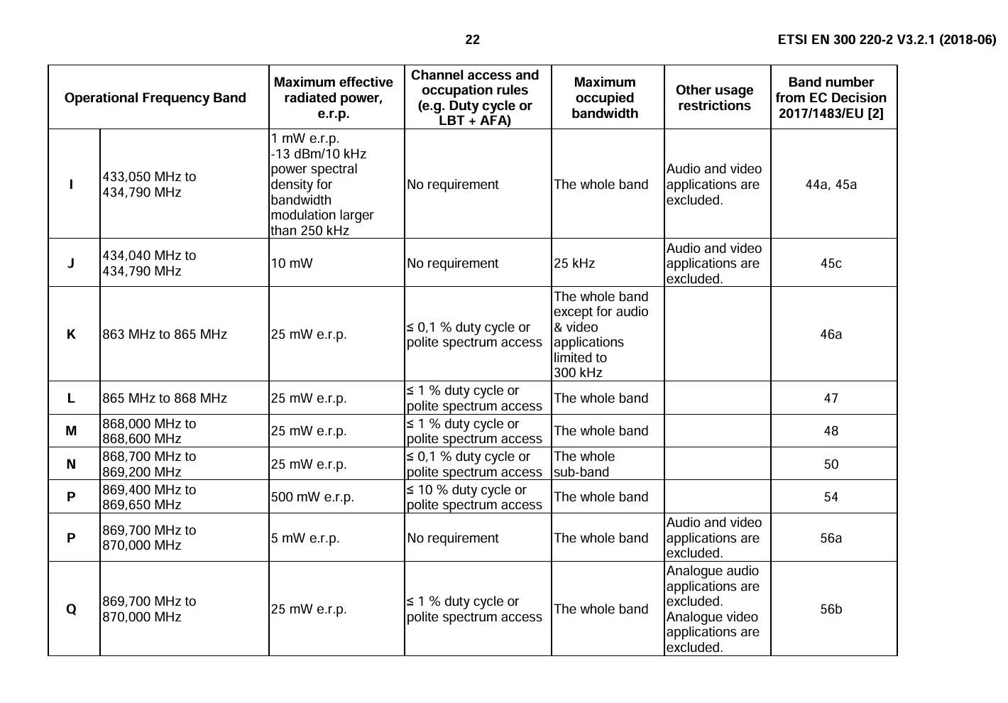 Mówi się, że w Polsce obowiązuje częstotliwość 868 MHz (oraz 433 MHz, ale nią się nie zajmujemy) jeśli chodzi o LoRe, ale jest to swego rodzaju skrót myślowy. W Polsce dla LoRy dostępne jest pasmo w przedziale 863-870 MHz, jednak całe to pasmo zostało podzielone na swego rodzaju segmenty, który każdy posiada inne cechy. Zerknij na tę tabelę: