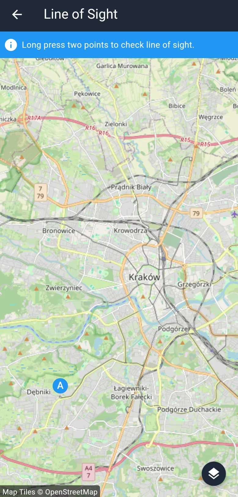 Pojawi się mapa. Znajdź dowolne miejsce, a następnie przytrzymaj palcem na określonym punkcie - pojawi się okrąg z napisem A.