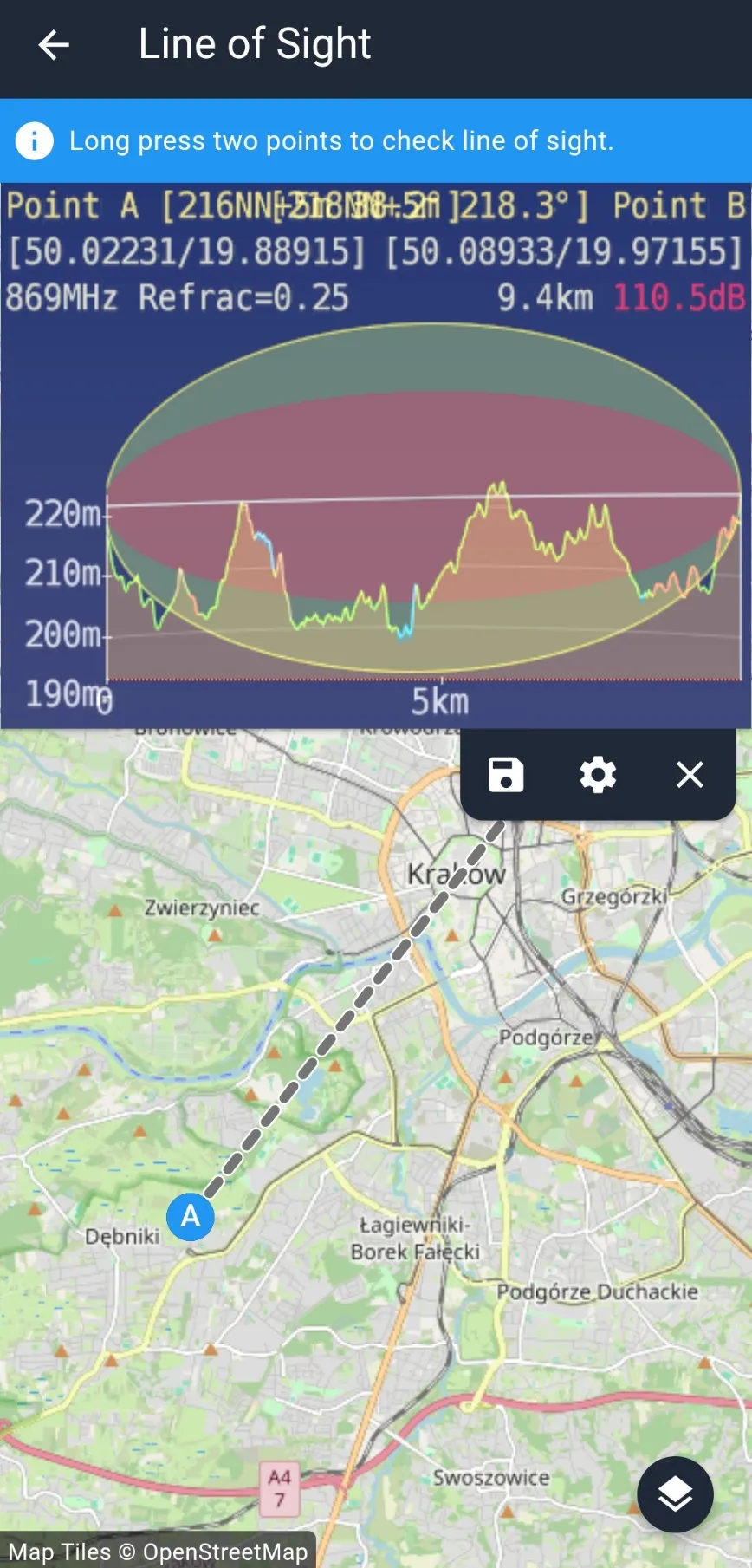 - Antena Height - wpisz jak wysoko znajduje się antena. Zrób to dla punktu A oraz B. Po zapisaniu zmian wykres zostanie jeszcze raz wygenerowany po kilku sekundach.