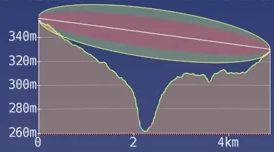 Najważniejsze jest czerwone pole i ogólna zasada jest taka, że 60% pierwszej strefy Fresnela musi być wolne od jakichkolwiek przeszkód. Jeśli tak nie jest, komunikacja pomiędzy urządzeniami nie zaistnieje.
