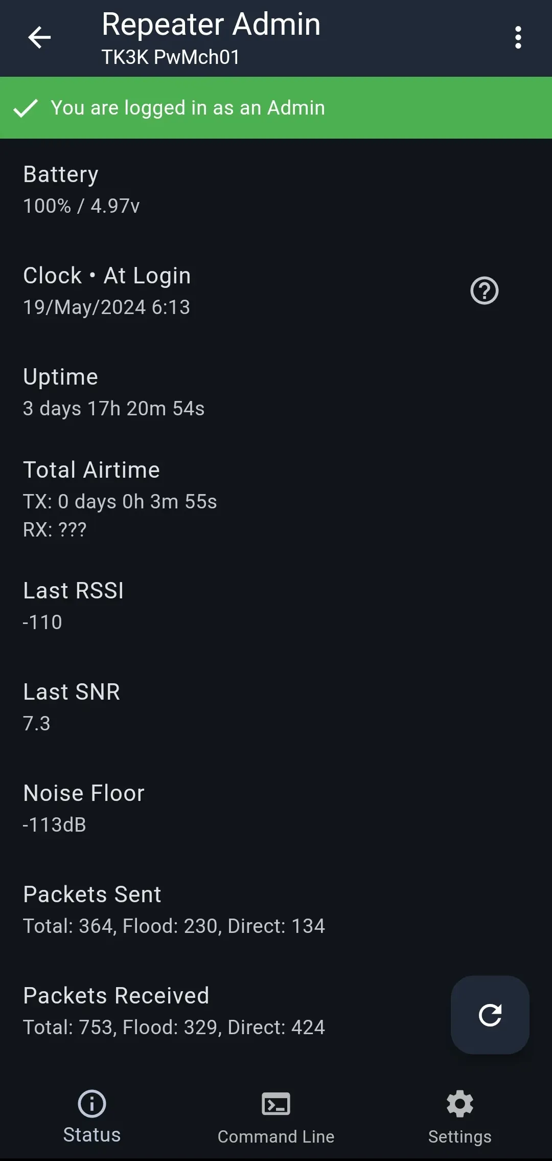 - Status = umożliwia pobieranie informacji telemetryczny ze stacji, czyli sygnały, napięcie itd.