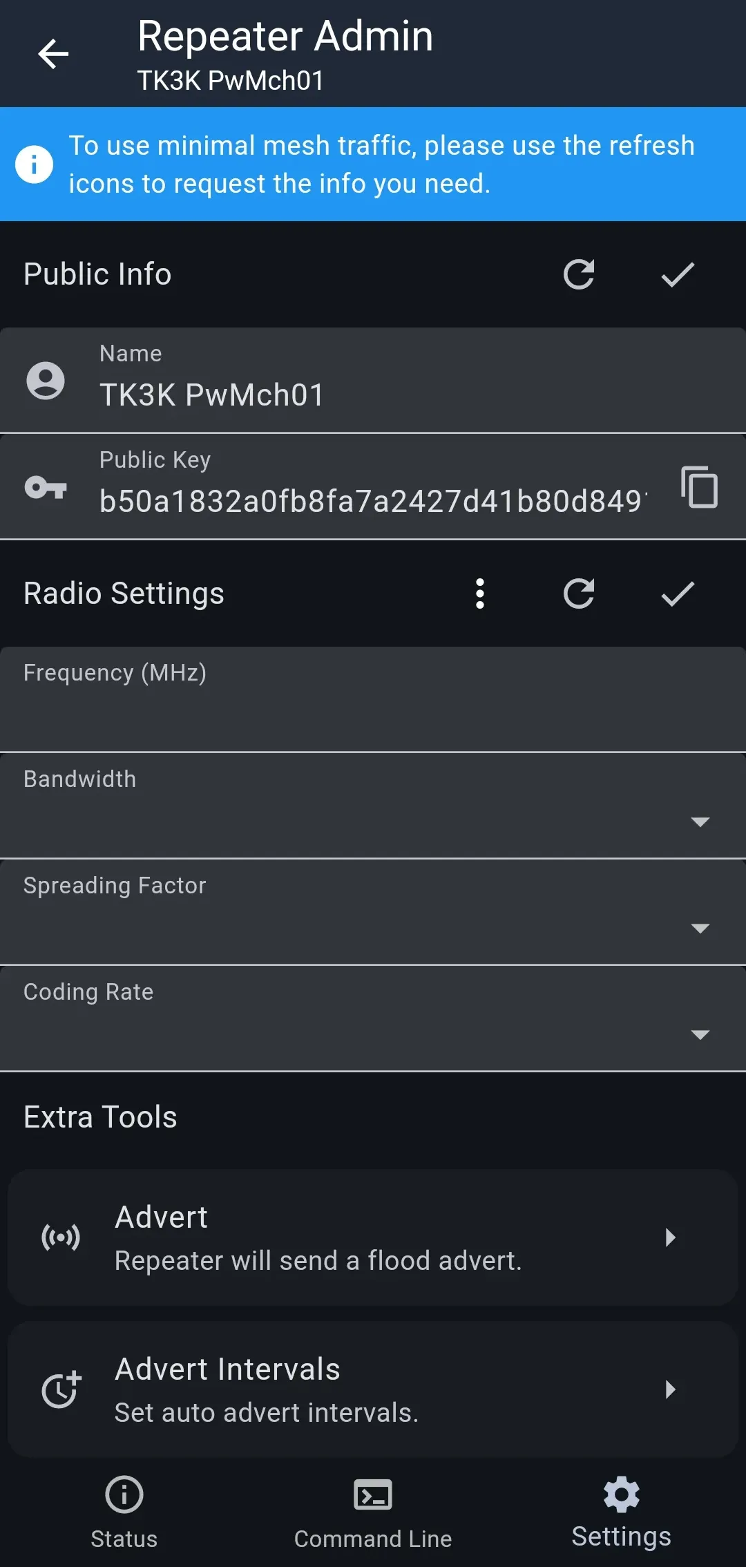Settings = ustawienia repeatera, które możemy zmienić przy pomocy aplikacji